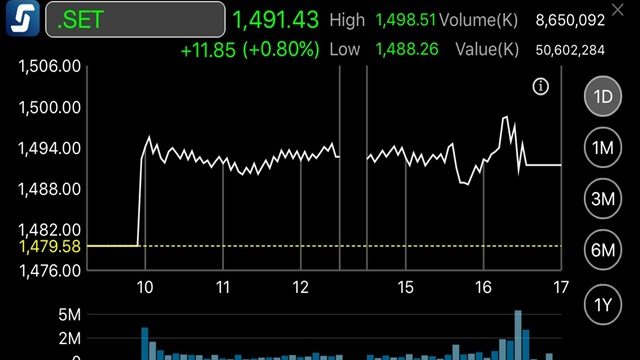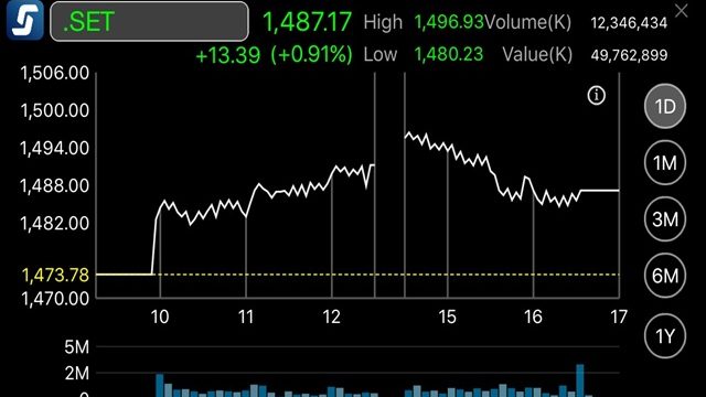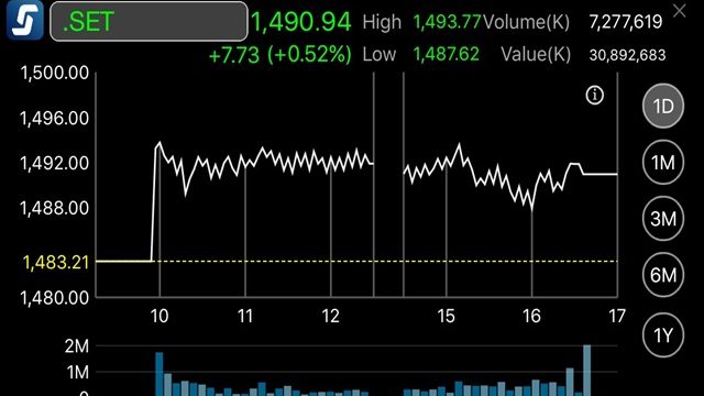 ตลาดหุ้นไทยบวก 7.73 จุด คลายกังวล “ดอยซ์แบงก์” หลังเจรจาสหรัฐลดค่าปรับ ปิดที่ระดับ 1,490.94 จุด