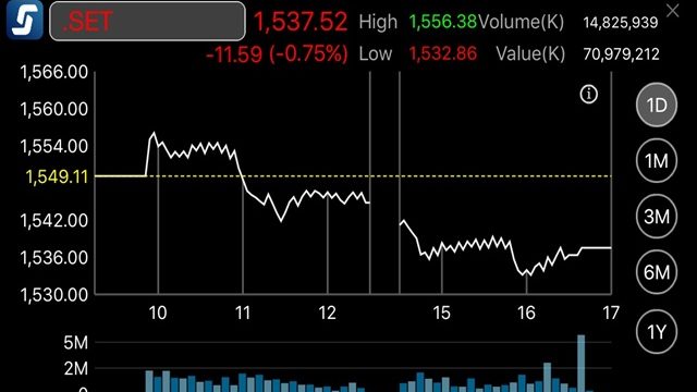หุ้นไทยลดลงเล็กน้อย 3.53 จุด เชื่อผลกระทบจากระเบิด 7 จังหวัดแค่ระยะสั้น