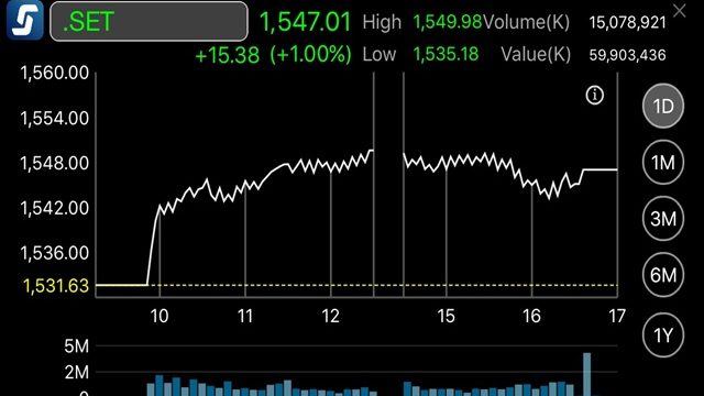 หุ้นไทยฟื้นตัวแรงบวก 15.38 จุด รับข่าวเฟดยังไม่ขึ้นดอกเบี้ยและราคาน้ำมันปรับขึ้น