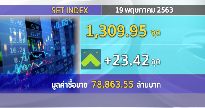 หุ้นไทยบวก 23.42 จุด ขานรับความคืบหน้าวัคซีนรักษาโควิด-19 ดัชนีปิดที่ 1,309.95 จุด