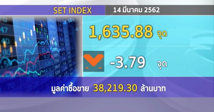 ตลาดหุ้นไทย (14 มี.ค.) ปิดการซื้อขายที่ 1,635.88 จุด ลบ 3.79 จุด มูลค่าการซื้อขาย 38,219.30 ล้านบาท