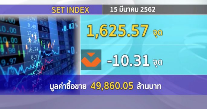 ตลาดหุ้นไทย (15 มี.ค.) ปิดการซื้อขายที่ 1,625.57 จุด ลบ 10.31 จุด มูลค่าการซื้อขาย 49,860.05 ล้านบาท