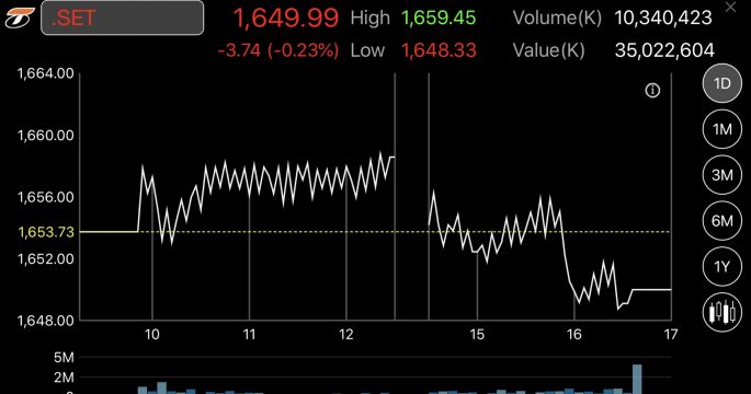 หุ้นไทยปิด 1,649.99 จุด ลดลง 3.74 จุด อ่อนแอกว่าภูมิภาค รอปัจจัยใหม่