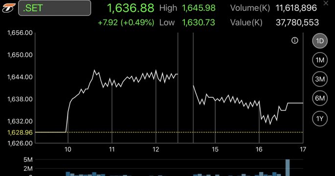 หุ้นไทยผันผวนช่วงเช้าร่วงหนัก ช่วงบ่ายพลิกกลับแดนบวก ปิดตลาดบวก 20.96 จุด