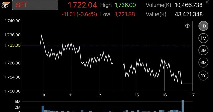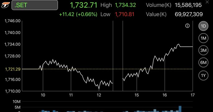 หุ้นไทยบวก 11.42 จุด ตอบรับศาลรัฐธรรมนูญวินิจฉัยคำสั่ง คสช.53/2560 ไม่ขัดรัฐธรรมนูญ
