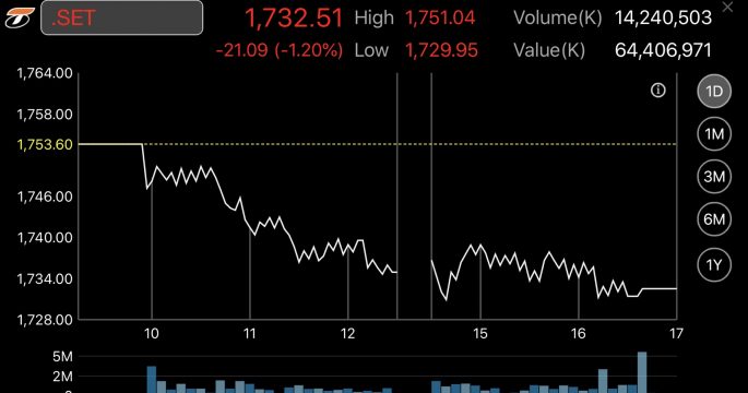 หุ้นไทยลดลง 6.67 จุด แรงขายหนักในกลุ่มพลังงาน หลังราคาน้ำมันโลกร่วง กังวลซาอุฯ-รัสเซียอาจเพิ่มกำลังการผลิต