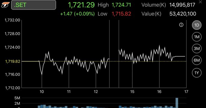 หุ้นไทยเคลื่อนไหวแคบ ๆ บวก 1.47 จุด