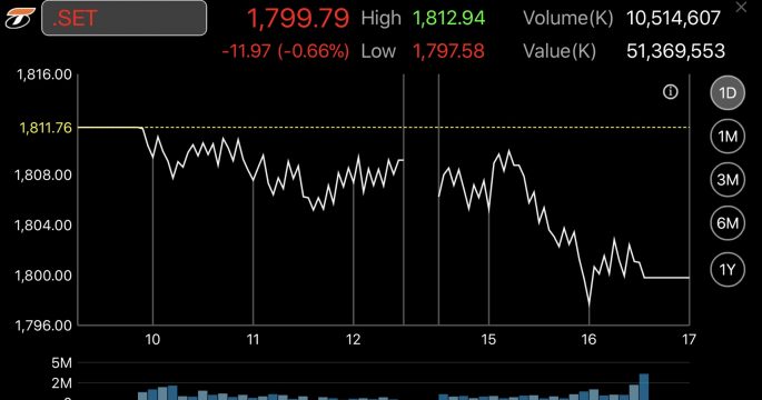หุ้นไทยลบ 4.32 จุด ขาดปัจจัยใหม่ เคลื่อนไหวแคบ ๆ รอประชุมเฟดสัปดาห์หน้า