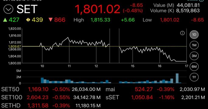 หุ้นไทยลดลง 3.09 จุด รับแรงกดดันจากต่างประเทศ จับตาสหรัฐปรับขึ้นภาษีเหล็ก-อลูมิเนียม