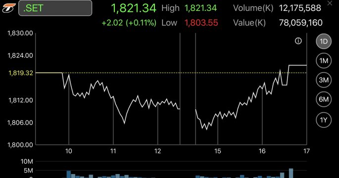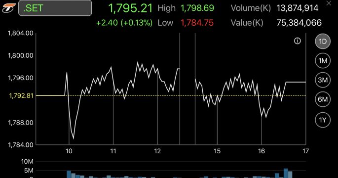 ดัชนีหุ้นไทยปิดบวก 12.49 จุด สร้างสถิติใหม่ทุกวัน ขานรับภาวะเศรษฐกิจไทยอยู่ในเกณฑ์ดี โบรกเกอร์คาดทดสอบ 1,800 จุดพรุ่งนี้