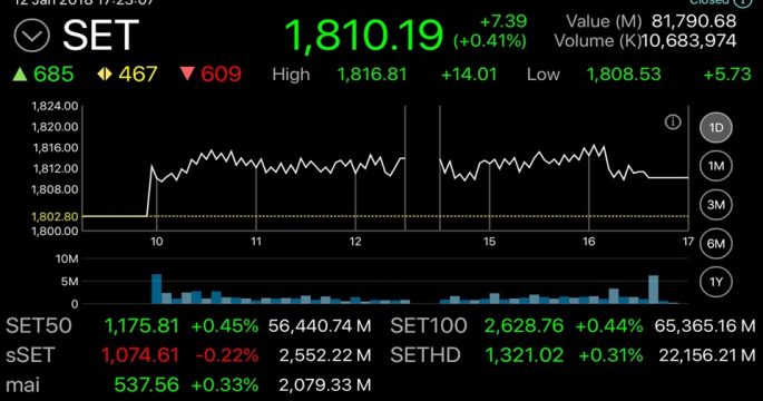 หุ้นไทยสร้างสถิติสูงสุดทะลุ 1,800 จุด เป็นครั้งแรก นับตั้งแต่เปิดการซื้อขายตลาดหลักทรัพย์ในปี 2518