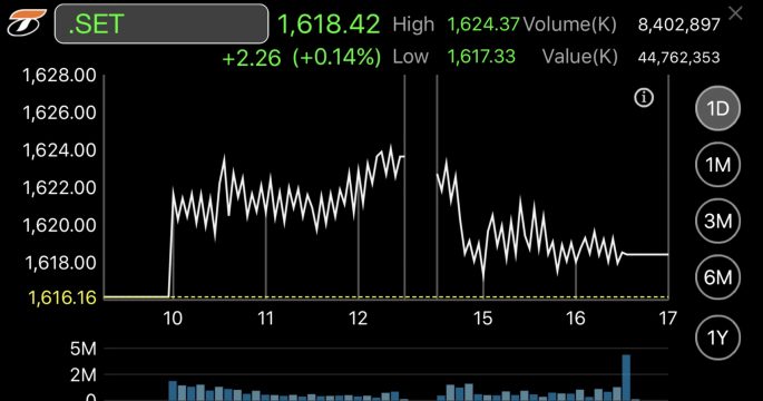 หุ้นไทยบวกเล็กน้อย 1.31 จุด แกว่งตัวกรอบแคบรอปัจจัยใหม่ มูลค่าซื้อขายกว่า 50,000 ล้านบาท