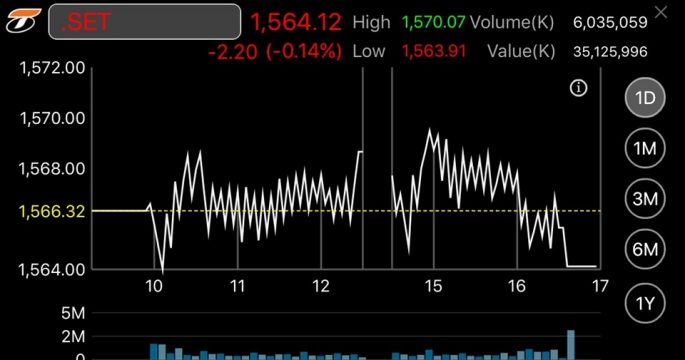 หุ้นไทยปิดการซื้อขายที่ระดับ 1,564.12 จุด ไม่เปลี่ยนแปลง นักลงทุนจับตาประชุมเฟดคืนนี้