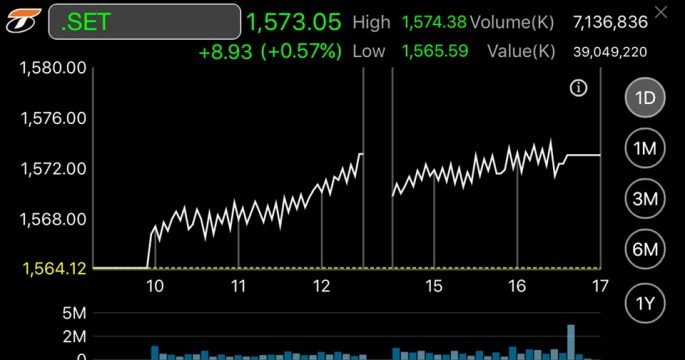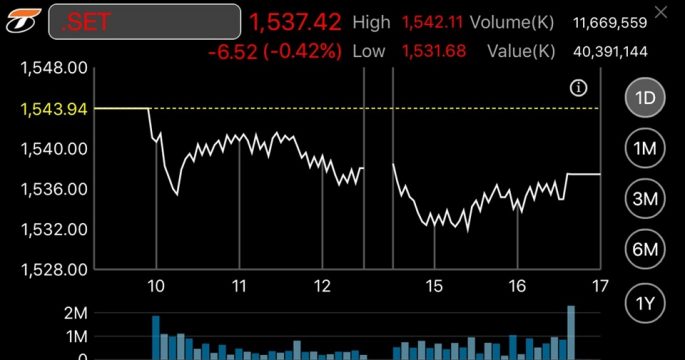 หุ้นไทยปิดลดลง 2.20 จุด บล.ทรีนีตี้คาดดัชนีแกว่งตัว 1,540 – 1,590 จุด