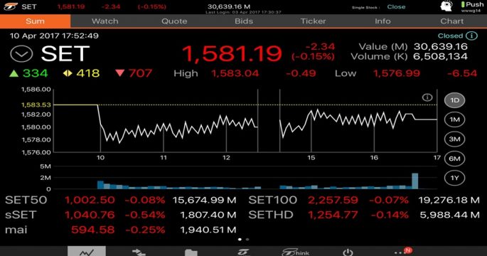 ตลาดหุ้นไทยลดลง 2.34 จุด นักลงทุนชะลอลงทุนใกล้หยุดสงกรานต์ – กังวลสหรัฐโจมตีซีเรีย
