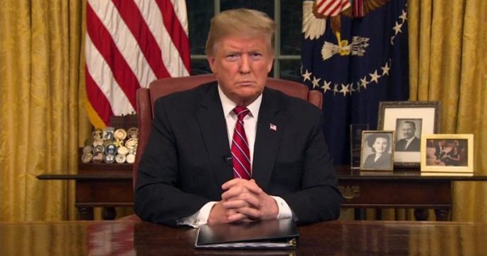 ประธานาธิบดีโดนัลด์ ทรัมป์ของสหรัฐย้ำเรื่องต้องการงบประมาณสร้างกำแพงเม็กซิโกในการกล่าวสุนทรพจน์จากทำเนียบขาวถึงประชาชนทั้งประเทศเป็นครั้งแรกของปีนี้