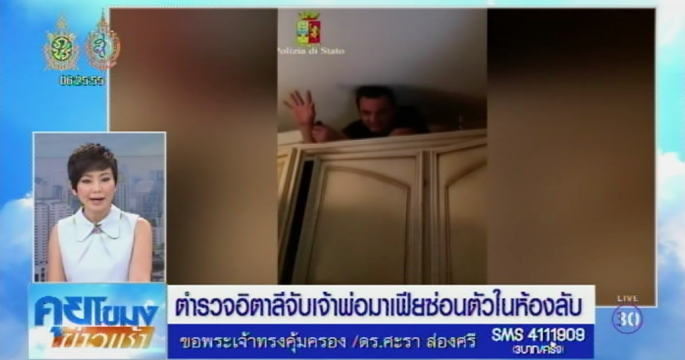 ตำรวจอิตาลีบุกจับกุมคนร้ายเจ้าพ่อมาเฟียรายหนึ่งซุกซ่อนตัวอยู่ภายในห้องลับภายในบ้าน หลังหลบหนีคดีได้นานกว่า 5 ปี