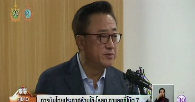 บริษัทการบินไทย จำกัด (มหาชน) ขอความร่วมมือจากผู้โดยสารที่ใช้งานสมาร์ทโฟนรุ่นกาแลคซี่ โน้ต7 ไม่เปิดใช้งาน หรือชาร์จ ระหว่างเดินทางอยู่บนเครื่องบิน