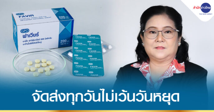 องค์การเภสัชกรรม (จีพีโอ) จัดส่งยา “ฟาวิพิราเวียร์” สู่หน่วยบริการแม่ข่ายตามการจัดสรรของศูนย์ PHEOC จำนวน 25 ล้านเม็ด อย่างต่อเนื่องทุกวัน ไม่เว้นวันหยุด