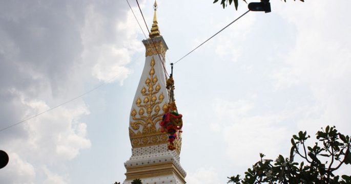 วัดพระธาตุพนมฯ ทำรอกสรงน้ำยอดพระธาตุสูงกว่า 50 เมตร หนึ่งปีมีครั้งเดียวในเทศกาลสงกรานต์ ขณะที่นักท่องเที่ยวเริ่มหลั่งไหลเข้า จ.นครพนม คาดช่วงวันหยุดยาวเนืองแน่น