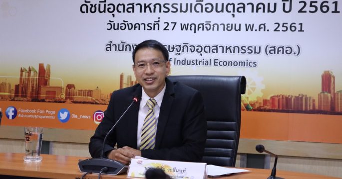 สศอ.เผยดัชนีผลผลิตอุตสาหกรรม ต.ค.61 ขยายตัวร้อยละ 4.08 ส่วนปีหน้าคาดโตร้อยละ 2-3