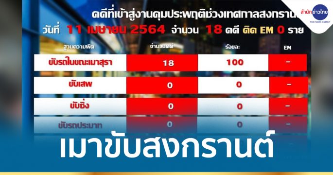 ปิดยอด 7 วันคุมเข้มช่วงสงกรานต์ เมาขับสูงถึง 6,061 คดี อุบลราชธานีแชมป์อันดับหนึ่ง