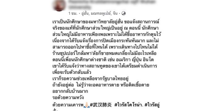 อธิบดีกรมสารนิเทศและโฆษกกระทรวงการต่างประเทศ ได้ติดต่อและขอให้นักเรียนไทยคนอื่นช่วยเหลือแนะนำนักศึกษาคนดังกล่าวแล้วว่าจะหาแหล่งอาหารได้เพิ่มเติมจากที่ไหน เผยร้านค้าและโรงอาหารเปิดตามปกติ