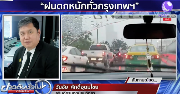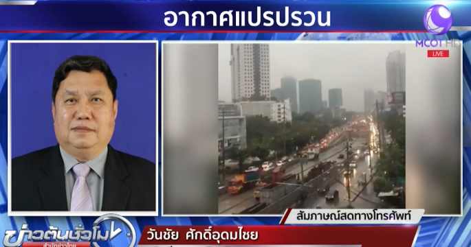 นายวันชัย ศักดิ์อุดมไชย อธิบดีกรมอุตุนิยมวิทยา เผยมวลอากาศเย็นจากจีน ปะทะกับอากาศอุ่นที่ปกคลุมกรุงเทพฯ ทำให้มีฝนตกหนักตั้งแต่ เวลา 04.00 น.