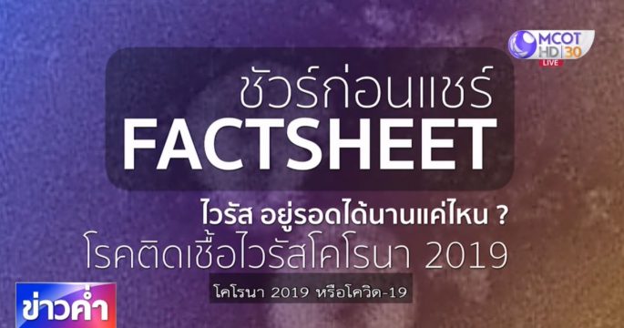 ชัวร์ก่อนแชร์ : FACTSHEET เชื้อไวรัสโควิด-19 อยู่รอดได้นานแค่ไหน ?