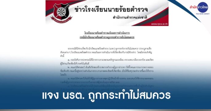 รร.นรต.แจงดำเนินการ 4 ข้อ นักเรียนนายร้อยตำรวจถูกกระทำไม่สมควร