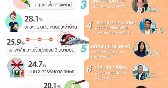 ผลสำรวจ “รัฐมนตรีผลงานโดดเด่นไตรมาสแรก ในสายตาประชาชน” กว่าร้อยละ43 มอง ‘อนุทิน ชาญวีรกูล’ มีผลงานเด่นสุดในไตรมาสแรก อันดับ 2 พล.อ.ประยุทธ์ จันทร์โอชา’