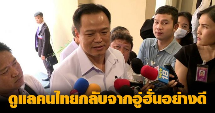 “อนุทิน”เผยข่าวดีอุปทูตจีนไฟเขียวบินรับคนไทยในอู่ฮั่นได้ 4 ก.พ.นี้ เตรียมหารือนายกฯประสานหน่วยทหารหาสถานที่กักตัวเฝ้าระวังอาการ 14 วันหลังกลับมาถึงไทย