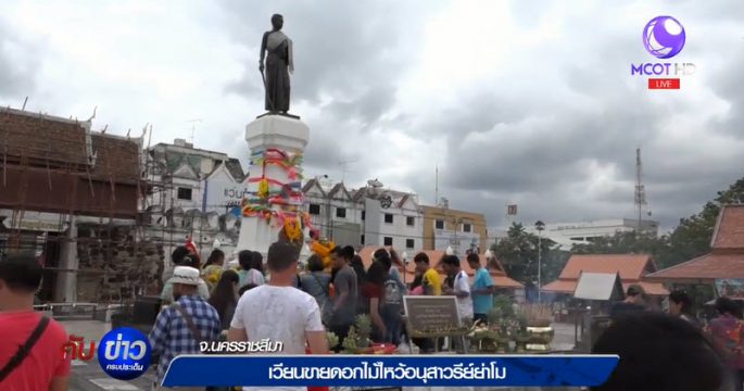 พบผู้ค้าดอกไม้อนุสาวรีย์ “ย่าโม” เวียนเก็บดอกไม้ที่ประชาชนนำไปกราบไหว้แล้วนำกลับมาขายซ้ำ ราคาพวงละ 20 บาท