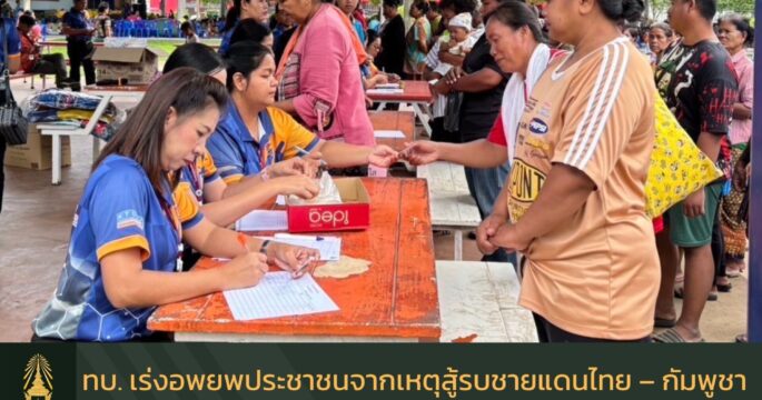 25 ก.ค.- ทบ. เร่งอพยพกว่า 6 หมื่นคน 14 อำเภอ 4 จังหวัด หนีสู้รบชายแดนไทย-กัมพูชา พบวันนี้เสียชีวิต 16 ราย เจ็บ 29 คน ตั้งโรงครัวพระราชทาน 6 จุด พ.ต.หญิง จุฑาพัชร เปรมบัญญัติ ผู้ช่วยโฆษกกองทัพบก เปิดเผยว่า กองทัพบกร่วมกับส่วนราชการในพื้นที่เร่งอพยพประชาชนออกจากพื้นที่การสู้รบ ตลอดแนวชายแดนไทย – กัมพูชา หลังจากฝ่ายกัมพูชาเปิดฉากใช้อาวุธหนักยิงโจมตีเข้ามาในเขตพื้นที่ประเทศไทยตั้งแต่เมื่อเช้าวานนี้ (24 ก.ค.68) ส่งผลให้ประชาชนในพื้นที่รวม 14 อำเภอ ใน 4 จังหวัด ได้แก่ จ.บุรีรัมย์ อ.บ้านกรวด, จ.สุรินทร์ อ.กาบเชิง, อ.พนมดงรัก, อ.สังขะ, อ.บัวเชด, อ.ปราสาท และ อ.เมืองสุรินทร์, จ.ศรีสะเกษ อ.กันทรลักษ์, อ.เบญจลักษ์, อ.ศรีรัตนะ, อ.พยุห์, อ.กันทรารมย์ […]