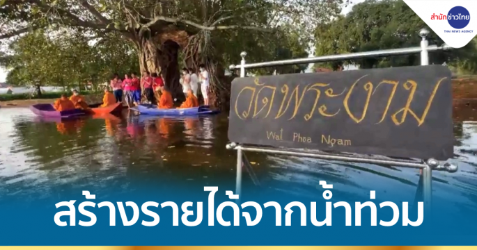 นักท่องเที่ยวสุดตื่นเต้นช่วงสุดท้ายก่อนน้ำลด แห่แต่งชุดไทยไปใส่บาตรพระที่ “ประตูกาลเวลา” วัดพระงาม จ.อยุธยา สร้างรายได้เรือรับจ้างชาวบ้านคนละเกือบ 2,000 ต่อวัน
