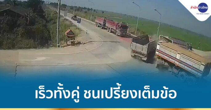 อุบัติเหตุรถบรรทุกชนรถบรรทุกด้วยกันเอง ภาพจากกล้องวงจรปิดเห็นจะๆ เร็วทั้งคู่ ชนเปรี้ยงเต็มข้อ เหตุเกิดแยกมิยาซาวา แยกวัดใจ แยกร้อยศพในจังหวัดพระนครศรีอยุธยา