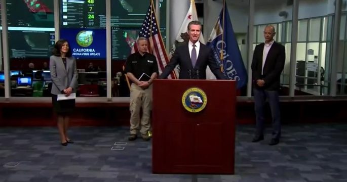 นายแกวิน นิวซัม ผู้ว่าการรัฐแคลิฟอร์เนียที่มีประชากรมากที่สุดในสหรัฐมีคำสั่งให้คนทั้งรัฐอยู่แต่ในบ้านเพื่อรับมือกับโรคติดเชื้อไวรัสโคโรนา 2019 หรือโควิด-19