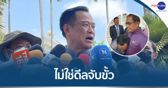 “อนุทิน” เผย อวยพรส่วนตัวนายกฯ บนตึกไทย ทำงานมา 4 ปี ผูกพันเหมือนเรียนจบป.ตรีด้วยกัน ไม่ใช่ดีลจับขั้ว ย้ำต้องรอหลังเลือกตั้ง อย่าเพิ่งผูกมัด แจงกอดนายกฯ ทำตามสื่อบอก