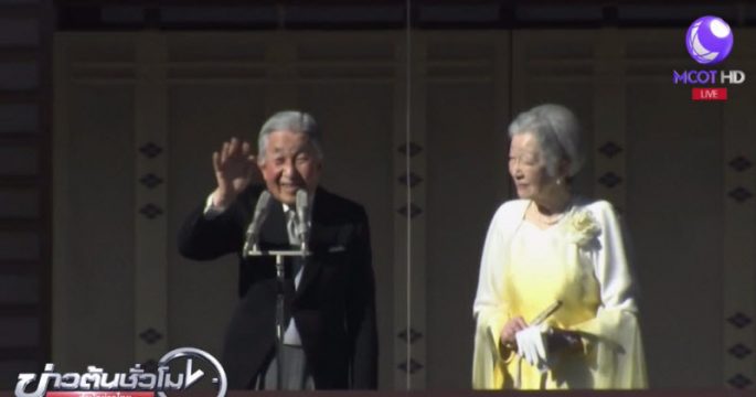 สมเด็จพระจักรพรรดิอากิฮิโตะของญี่ปุ่น เสด็จออกมาอวยพรประชาชนชาวญี่ปุ่นนับหมื่นคน ที่หน้าพระราชวังอิมพีเรียล เนื่องในโอกาสวันขึ้นปีใหม่