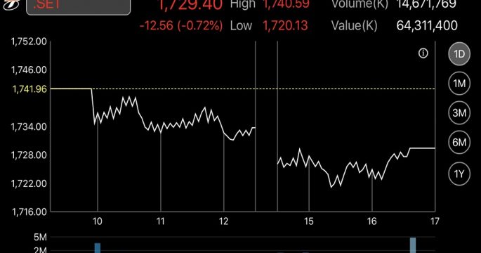กรุงเทพฯ 4 ต.ค.- หุ้นไทยแกว่งตัวจากปัจจัยดอลลาร์สหรัฐแข็งค่าเงินไหลออกและแรงกดดันมาตรการเข้มงวดสินเชื่ออสังหาริมทรัพย์ ตลาดหลักทรัพย์ปิดวันนี้ที่ระดับ 1,729.40 จุด ลดลง 12.56 จุด (-0.72%) มูลค่าการซื้อขาย 64,311.40 ล้านบาท การซื้อขายหุ้นวันนี้ ดัชนีหุ้นไทยเคลื่อนไหวทั้งในแดนลบ โดยดัชนีฯแตะจุดสูงสุดที่ 1,749.59 จุด และแตะจุดต่ำสุดที่ระดับ 1,720.13 จุด นายวิจิตร อารยะพิศิษฐ ผู้อำนวยการฝ่ายวิจัย บล.เมย์แบงก์ กิมเอ็ง (ประเทศไทย) กล่าวว่า ตลาดหุ้นไทยปรับตัวลงค่อนข้างแรง หลังจากหลุดแนวรับสำคัญที่ 1,730 จุด ลงมาก็ทำให้มีแรงขายออกมามากขึ้น จากปัจจัยลบค่าเงินดอลลาร์สหรัฐแข็งค่า ทำให้สกุลเงินในเอเชียอ่อนค่าลง ส่งผลให้เงินทุนไหลออกต่อเนื่องจากประเทศกลุ่มTIP นอกจากนี้ ยังเผชิญแรงกดดันจากมาตรการของธนาคารแห่งประเทศไทย (ธปท.) ที่เพิ่มความเข้มงวดในการกำกับดูแลสินเชื่ออสังหาริมทรัพย์ กดดันหุ้นในกลุ่มอสังหาริมทรัพย์ และกลุ่มแบงก์ที่ปล่อยสินเชื่อ ทำให้มีแรงขายออกมา ภาพรวมการซื้อขายวันนี้ นักลงทุน สถาบันในประเทศ ขายสุทธิ 3,436.23 ล้านบาท บัญชีบริษัทหลักทรัพย์ ซื้อสุทธิ 717.67 ล้านบาท นักลงทุนต่างประเทศ […]