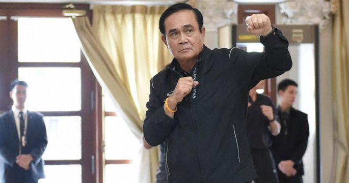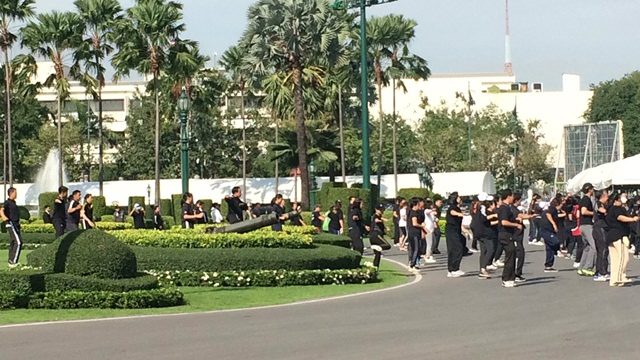 นายกฯ ร่วมออกกำลังกายประจำสัปดาห์ พร้อมแจกเสื้อยืดสำหรับออกกำลังกาย มีข้อความ PM fan club บริเวณไหล่ข้างซ้าย
