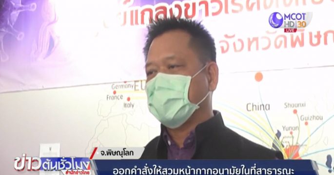 นายพิพัฒน์ เอกภาพันธ์ ผู้ว่าราชการจังหวัดพิษณุโลก ออกประกาศด่วนให้ประชาชนสวมหน้ากากอนามัยตลอดเวลาที่ออกไปในที่สาธารณะ