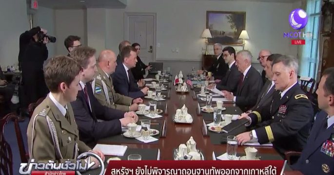 นายเจมส์ แมททิส รัฐมนตรีกลาโหมสหรัฐฯ กล่าวถึงการพบปะระหว่างผู้นำเกาหลีเหนือและเกาหลีใต้ ซึ่งถือเป็นเรื่องดีที่ไม่เคยพบเห็นมาก่อน