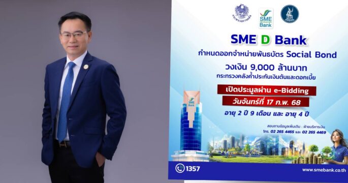 SME D Bank เตรียมออก Social Bond อายุ 2 ปี 9 เดือน -รุ่นอายุ 4 ปี วงเงิน 9,000 ล้านบาท ระดมทุนหนุนเอสเอ็มอีเข้าถึงสินเชื่อดอกเบี้ยต่ำ
