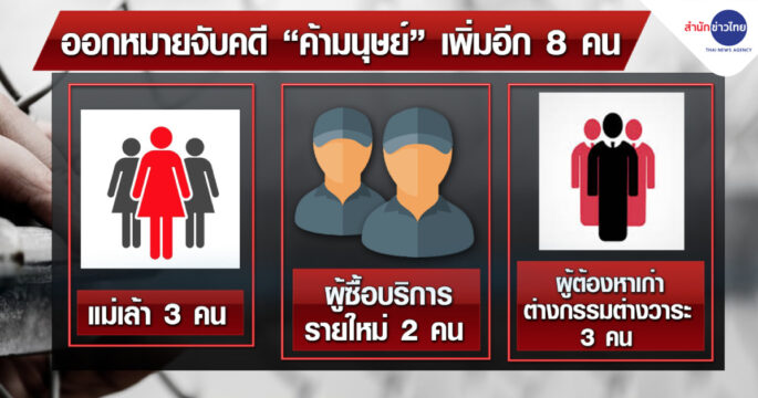 ออกหมายจับเพิ่มอีก 8 คน กลุ่มค้ากามเด็กกลุ่มใหม่ จังหวัดสุราษฏร์ธานี ด้าน พม.สั่งเด้งรองอธิบดีกรมกิจการเด็กและเยาวชน มาช่วยราชการ มีผลตั้งแต่เมื่อวาน (6 พ.ค.) หลังมีชื่อถูกแจ้งความมีเอี่ยวในคดี