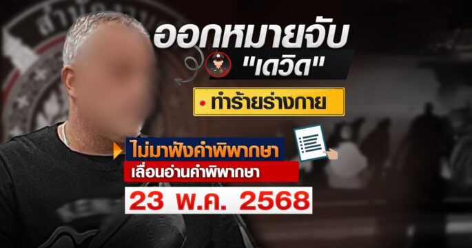 ศาลออกหมายจับ “เดวิด” เจ้าของปางช้าง จ.ภูเก็ต คดีทำร้ายร่างกาย “หมอปาย” หลังไม่มาฟังคำพิพากษาศาลอุทธรณ์ภาค 8 ศาลนัดฟังคำพิพากษาอีกครั้ง 23 พ.ค.นี้