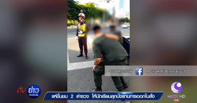 สังคมออนไลน์ชื่นชม 2 ตำรวจ สน.วิภาวดี ให้นักเรียนลุกนั่งแทนการออกใบสั่ง เหตุไม่สวมหมวกกันน็อก