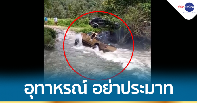 อันตราย! นั่งหลังคารถ ขณะลุยน้ำข้ามคลอง