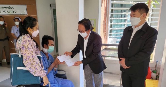 ธนาคารออมสิน รุดเยี่ยม รปภ. ใจเด็ด หลังเจ็บสาหัสสู้โจรบุกชิงเงินแบงก์สาขาทียูโดม รังสิต