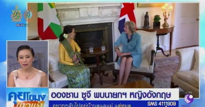 นางออง ซาน ซูจี พบหารือนายกรัฐมนตรีเทเรซา เมย์ ของอังกฤษ หารือแนวทางความร่วมมือระดับทวิภาคี ก่อนเดินทางเยือนสหรัฐต่อในวันนี้